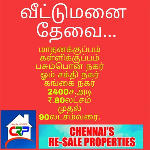 MADHAVARAM PERIYASEKADU 1000SQFT 20FT ROAD CMD & RERA APROUD PRE 1sqft * 40 LK CRP ID: [more]